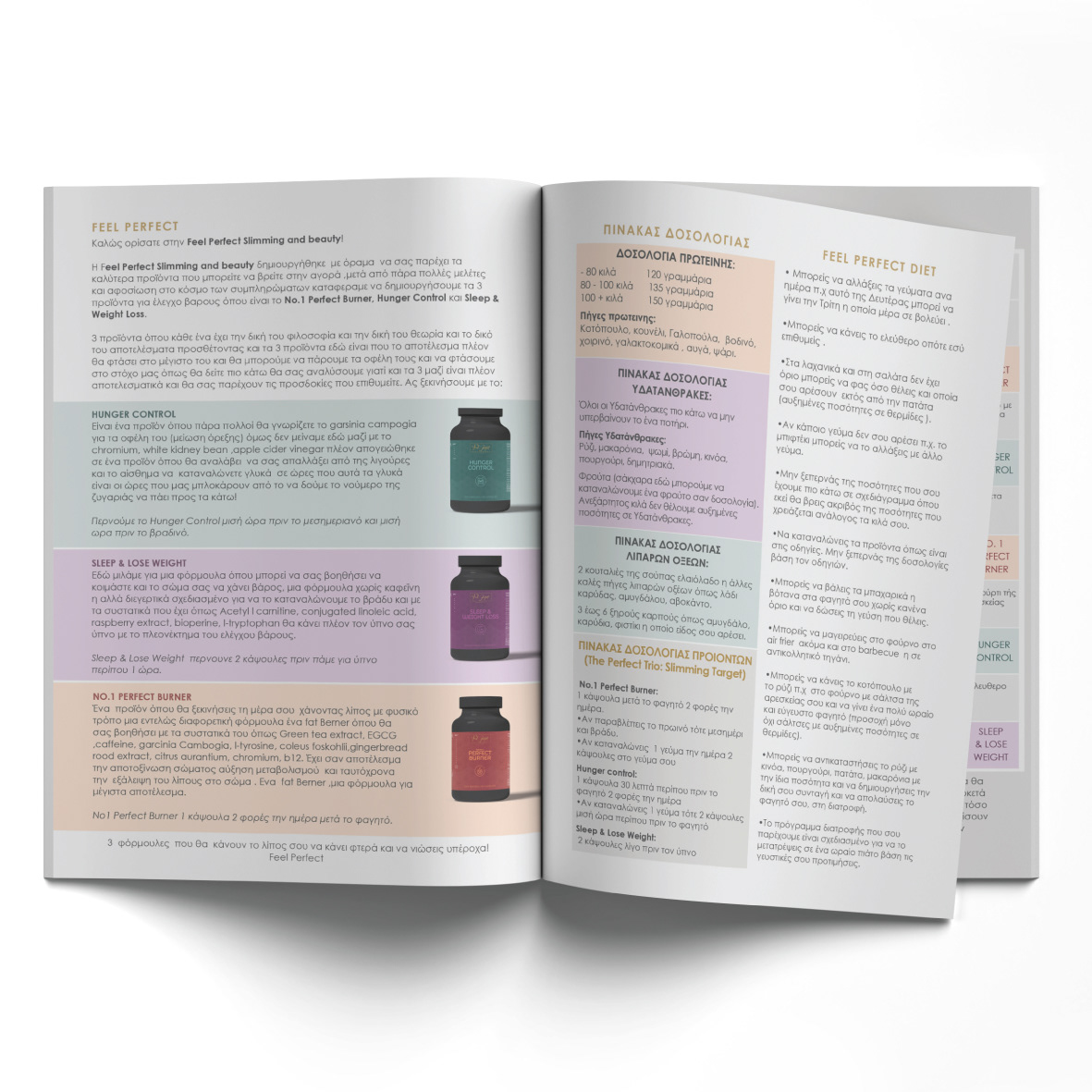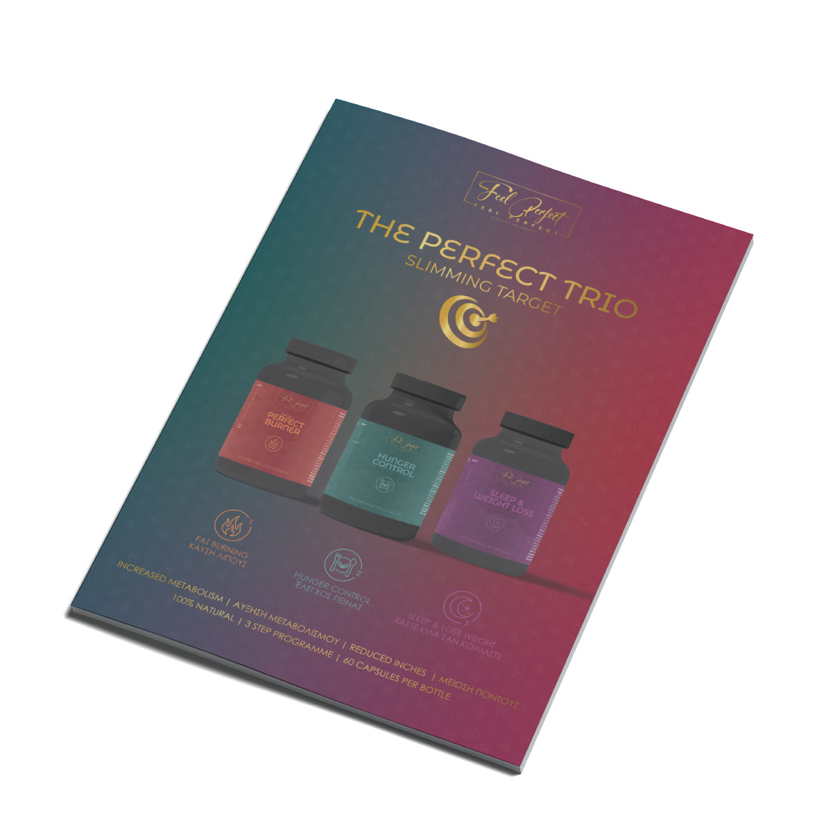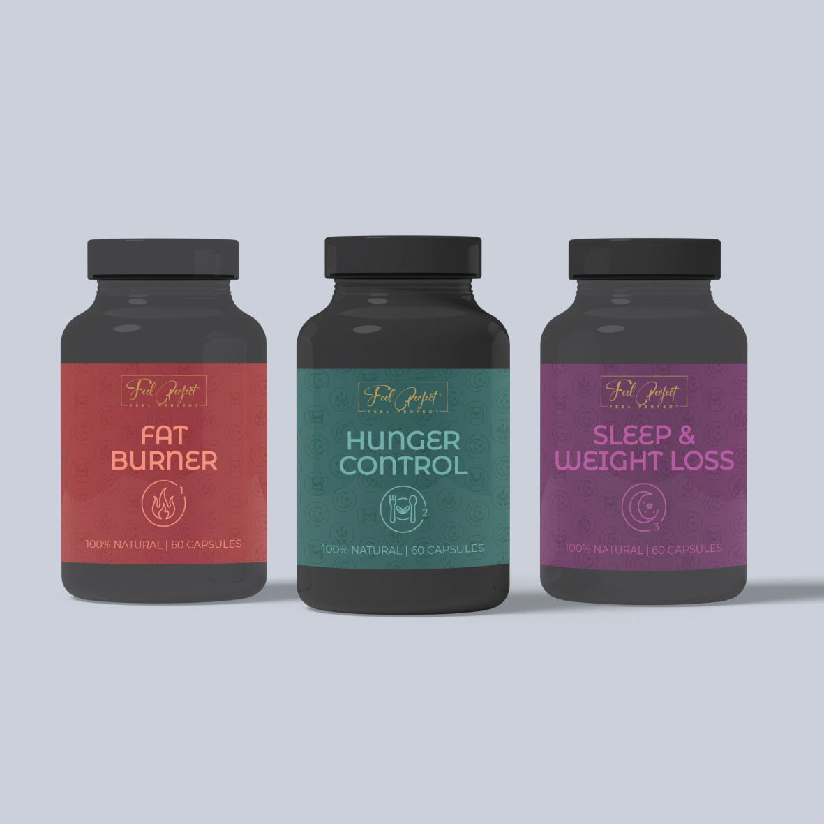 Feel Perfect is a holistic supplement brand offering a three-step system for weight management and wellness — Fat Burner #1, Hunger Control, and Sleep & Weight Loss. I developed a cohesive visual identity for the trio, including packaging design, color palette, and layout system that highlights the brand’s clean, premium, and empowering feel. The goal was to create a look that felt fresh, minimal, and motivating, while visually linking all three products as part of a unified journey toward feeling your best.